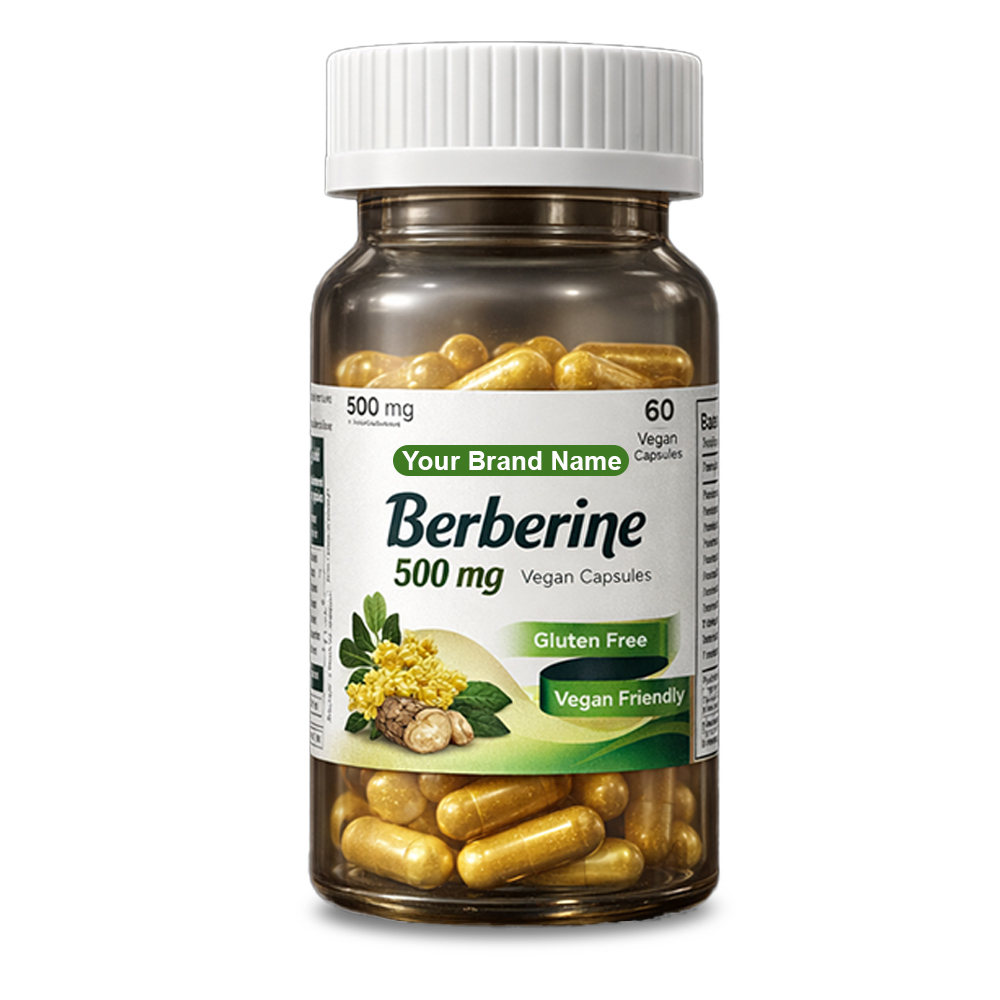 Encapsulated in vegan capsules, this product is suitable for individuals seeking a plant-based, easy-to-use daily supplement. Manufactured under controlled quality standards, Berberine Vegan Capsules are offered for private labeling, allowing brands to launch customized metabolic health supplements with their own branding and packaging.